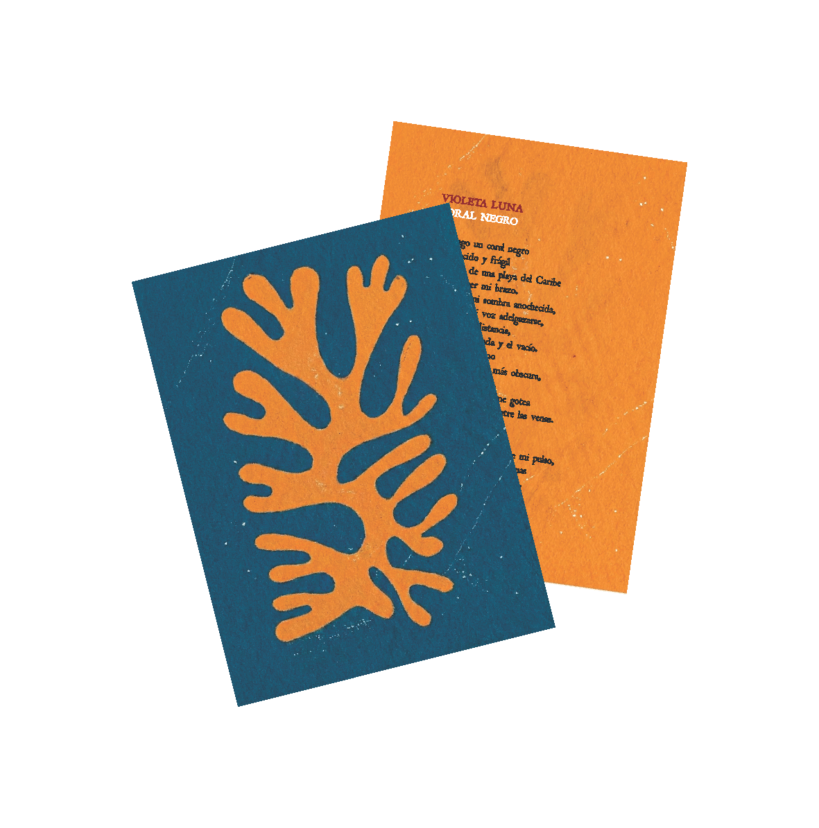 Violeta Luna (Guayaquil, 1943) es una poeta y ensayista ecuatoriana, catedrática de literatura y miembro de la Casa de la Cultura Ecuatoriana. Su poema “Coral Negro” utiliza el elemento marino como una metáfora física de la angustia: el coral se describe como un “negro nudo” y un objeto que atrae el vacío y la soledad, manifestando en los versos finales la necesidad imperiosa de devolverlo a la arena para anular la tristeza que provoca su tenencia.